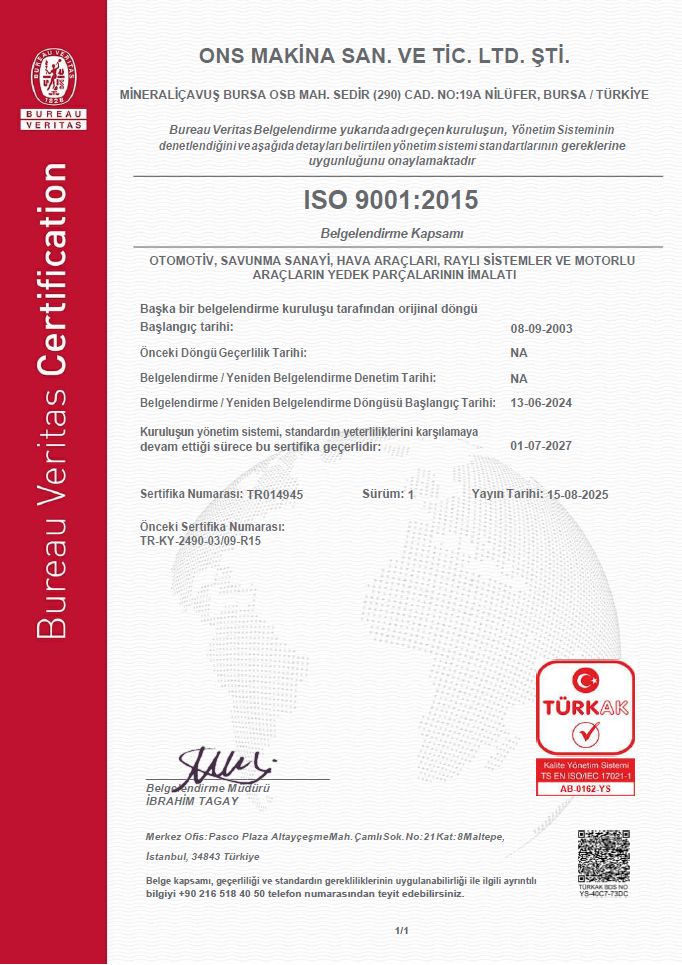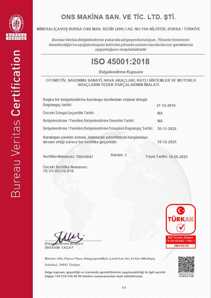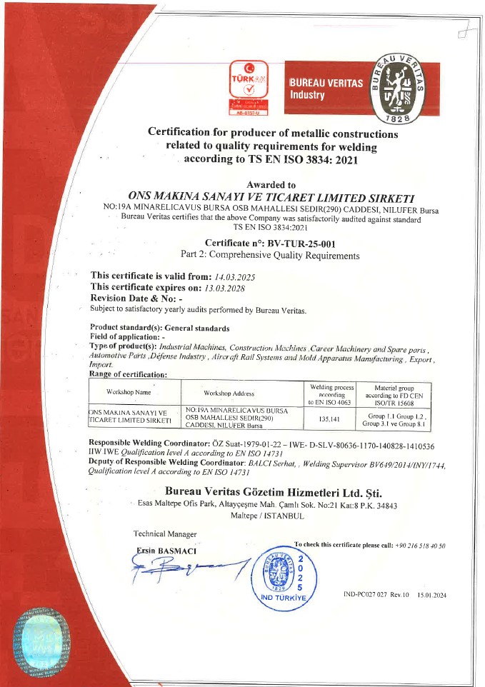 ONS Makina, inovasyon gücünü artıran Endüstri 4.0 tabanlı mühendislik çözümleriyle ve 100'ün üzerinde yetenekli uzman kadrosuyla müşterilerine nitelikli hizmet sunmaktadır.