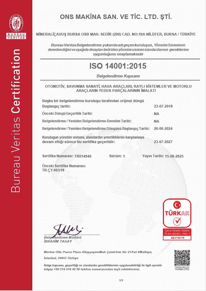 Otomotiv, Havacılık, Yüksek Hareketlilik Sistemleri ve Raylı Sistemler sektörlerinde faaliyet gösteren ONS Makina, mühendisliğinden devreye alımına kadar gerçekleştirdiği projeler ile müşterilerinin endüstriyel yatırım ekipmanları konusunda güvenilir tedarikçisi ve alanında Türkiye’nin öncü kuruluşlarındandır.